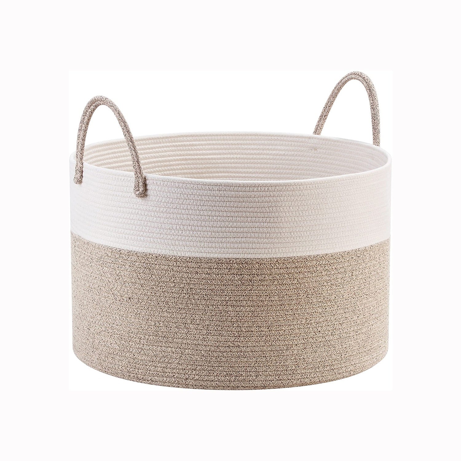 Korgen i bomullssnöre har en mjuk struktur och är utrustad med praktiska handtag. Den är idealisk för tvätt, leksaker eller textilier och passar perfekt i moderna hem. Med sin runda form blir den både användbar och stilfull.
